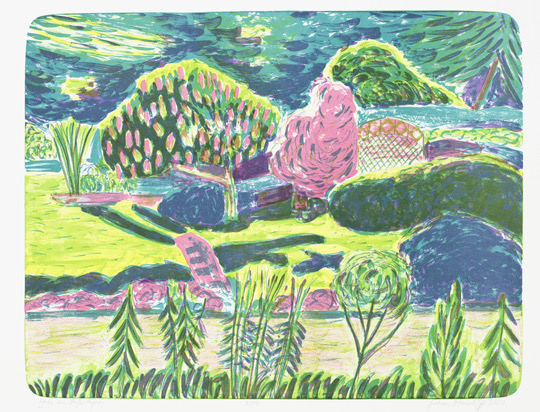 Die groß- bis kleinformatigen Malereien auf Leinwand und die Druckgrafiken sind ein Extrakt aus den letzten fünfzehn Jahren und alle haben sie ihren Ursprung als plein air. In der Zeichnung vor Ort beginnt bei Gudrun Petersdorff das Neuerfinden und Transformieren der Realität. Die Zeichnung ist „spontaner, unmittelbarer“ sagt sie, und Zeichnen ist intimer und schneller in den Entscheidungen. „Wenn mich das Motiv weiter interessiert, dann arbeite ich im Atelier in einem größeren Format weiter. Die Zeichnungen und Aquarelle nutze ich in diesem Fall als Vorarbeiten.“ Dass sie ihre Skizzenbücher als Tagebücher bezeichnet, lässt ahnen, wie dicht und regelmäßig und dass sie eigentlich überall skizziert – und wie viel Bedeutung der Alltagsumgebung in ihrem Werk zukommt.