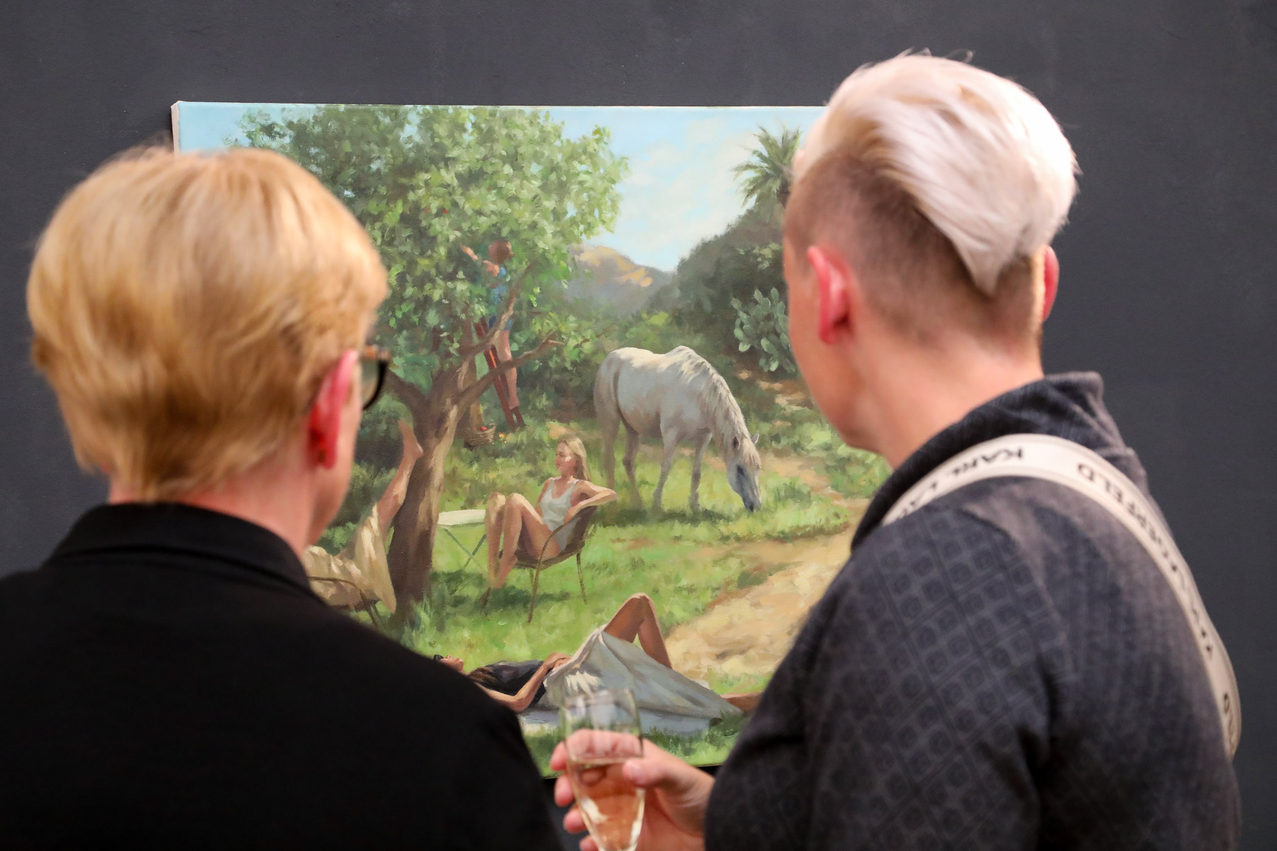 Es ist zeittypisches Signal der Kommunikation, dass ein Mangel an Überzeugung mit einem Übermaß an inszenierter Auffälligkeit einhergeht. Lauter, schriller, größer und provokanter gibt sich, was an Erkenntnis oder Vorstellung nicht stark genug ist. Die Künstlerin zeigt überwiegend neue Arbeiten, die keine engagierte Rechtfertigung brauchen. Sie sind groß, großartig, und können es sich leisten, leise zu sein, leise bis zum Unausgesprochenen und ruhig in minimalen Gesten bis zur Wirkung eines wohlplatzierten Schweigens, das die innere Ruhe gegen äußeren Lärm verteidigt; Werke, die leiser als laut sind. Ainara Torrano geht gegenständlich und figürlich konkret (Öl auf Leinwand), dem Spiel mit Identitäten nach. Die Maskeraden, Rollenspiele, Tagträume, Dämmerzustände und Selbstversuche der Protagonisten taumeln zwischen künstlicher Pose und Selbstvergessenheit. Beim Beobachter verbinden sich Neugier und Empathie. Er ist in konspirativer Weise mit der Szene und den Figuren verbunden, in dem er hineingenommen wird in die Stimmungen, die Spannungen, die Konstellationen und köstlichen Phantasien - und schließlich in die Frage, wie der Mensch zu dem wird, was er ist.